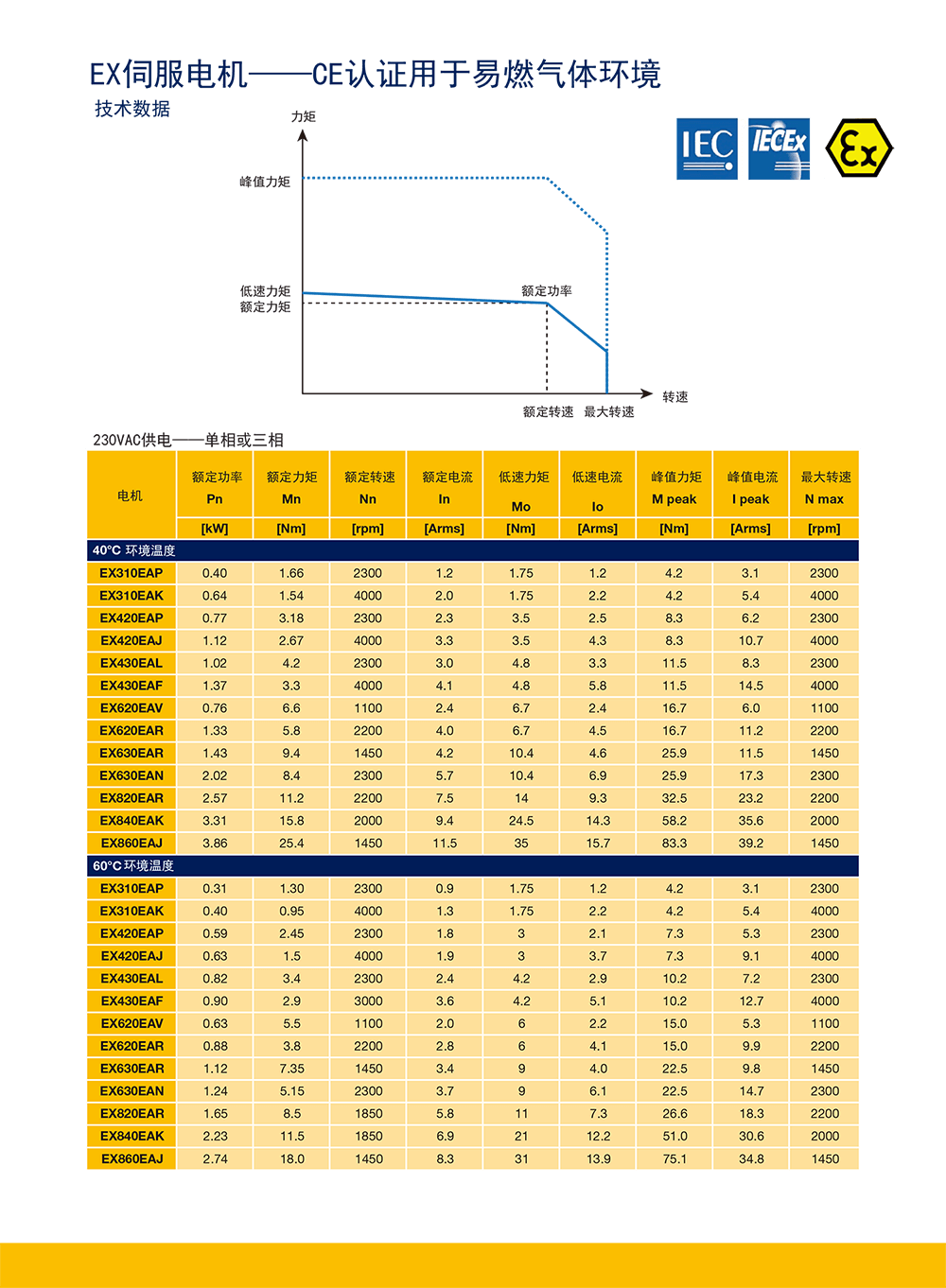 派克防爆伺服電機(jī)EX3系列,額定扭矩1.54Nm-1.66Nm,額定轉(zhuǎn)速2300/4000rpm,IIB T4防爆等級,用于1區(qū)環(huán)境。