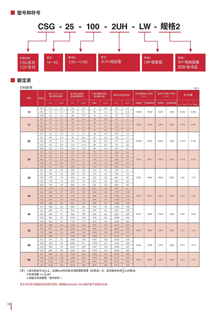 哈默納科諧波減速機CSG/CSF
