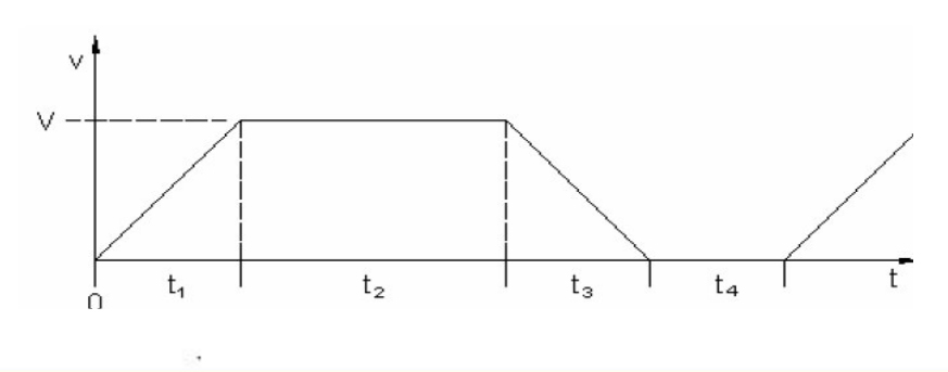 我們把停頓時間命名為t4。根據(jù)行程s,我們可以計算出t1、t2、t3,以及加速度a、減 速度‐a。這樣我們就可以繪出運動曲線(v‐t),如下圖
